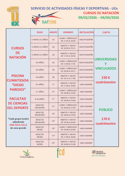 CURSOS DE NATACIÓN CÁCERES