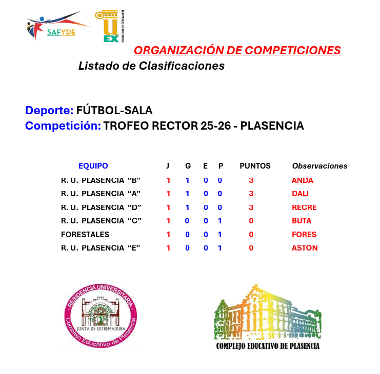 CLASIFICACIONES EQUIPOS PLASENCIA